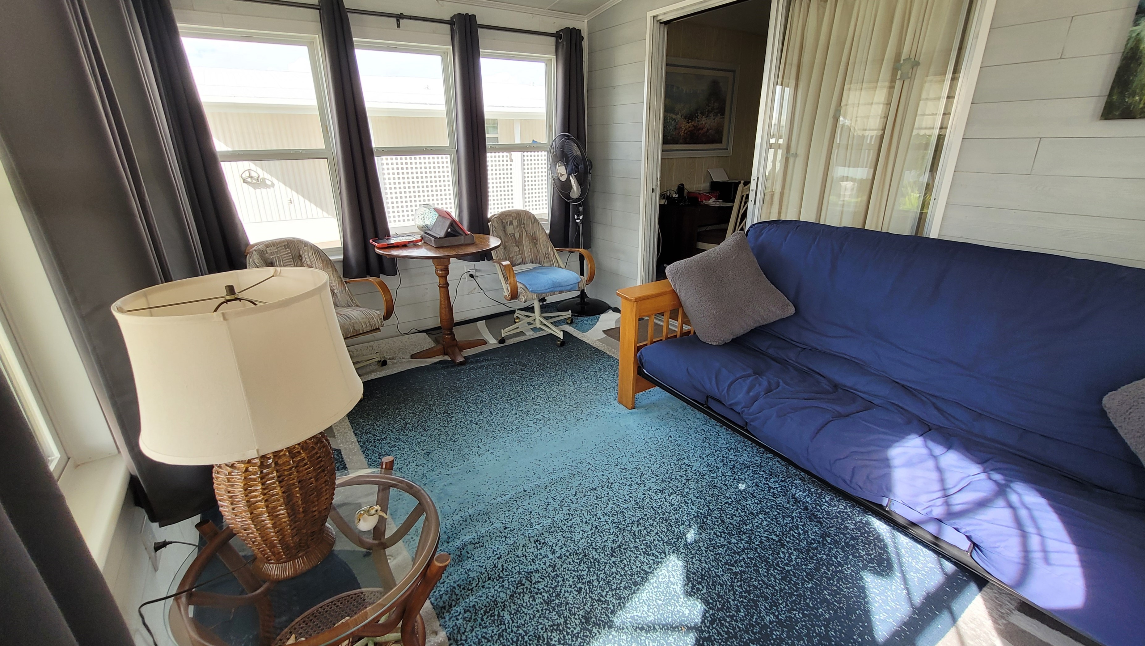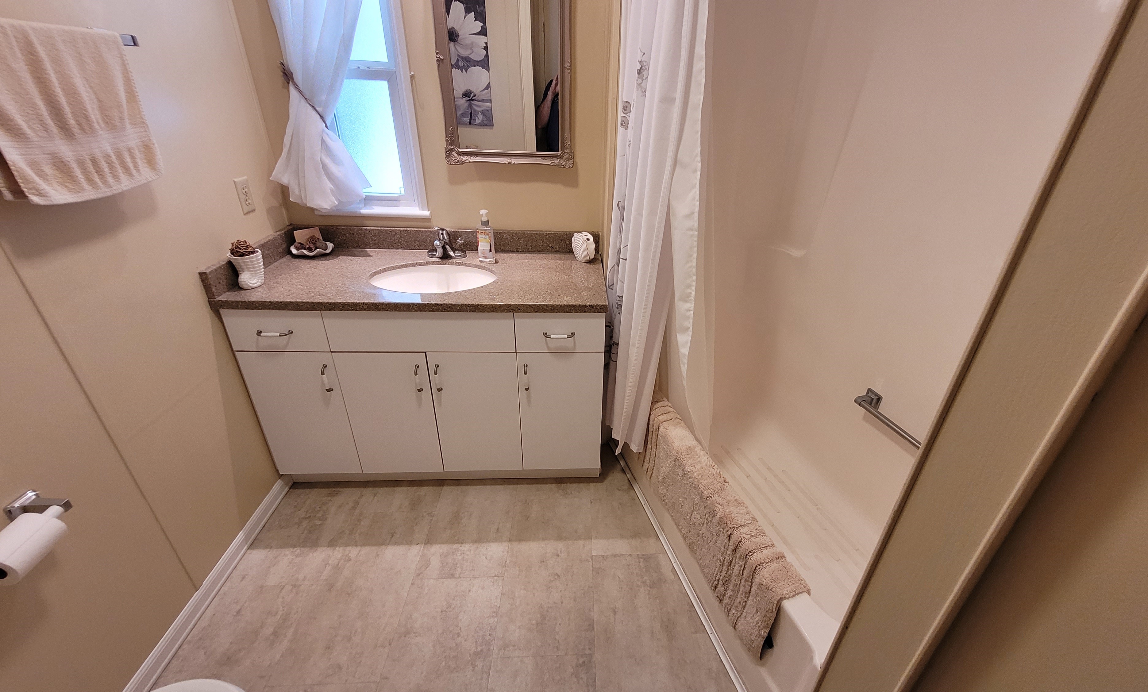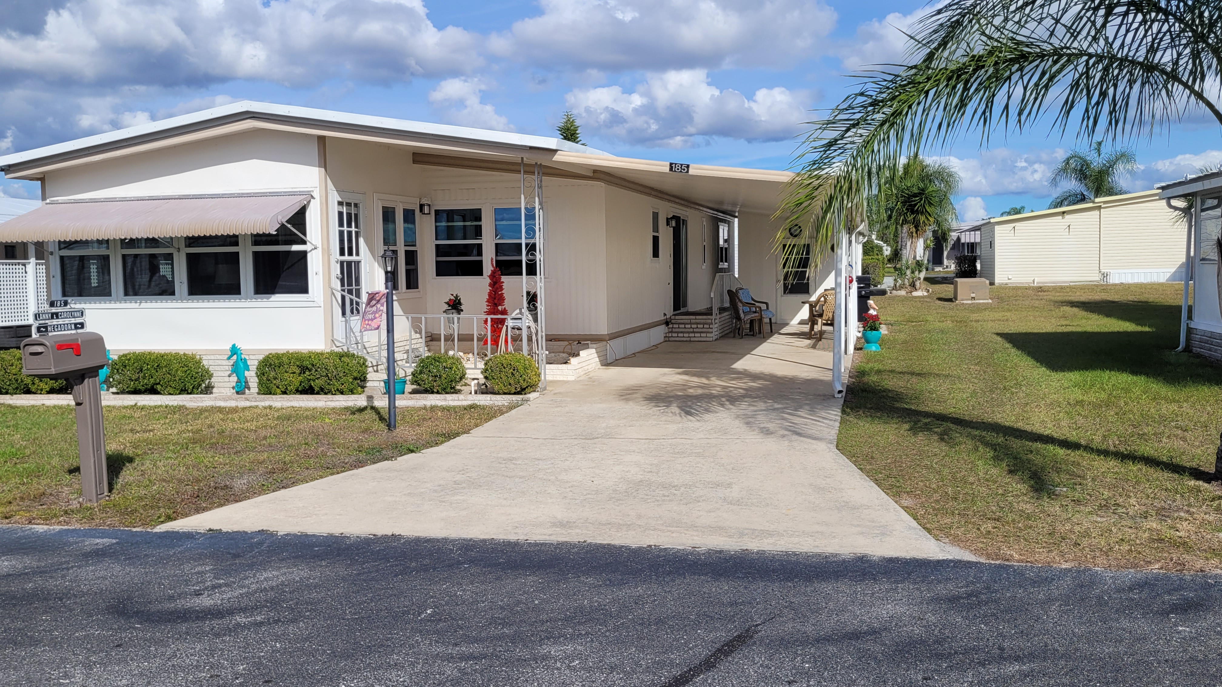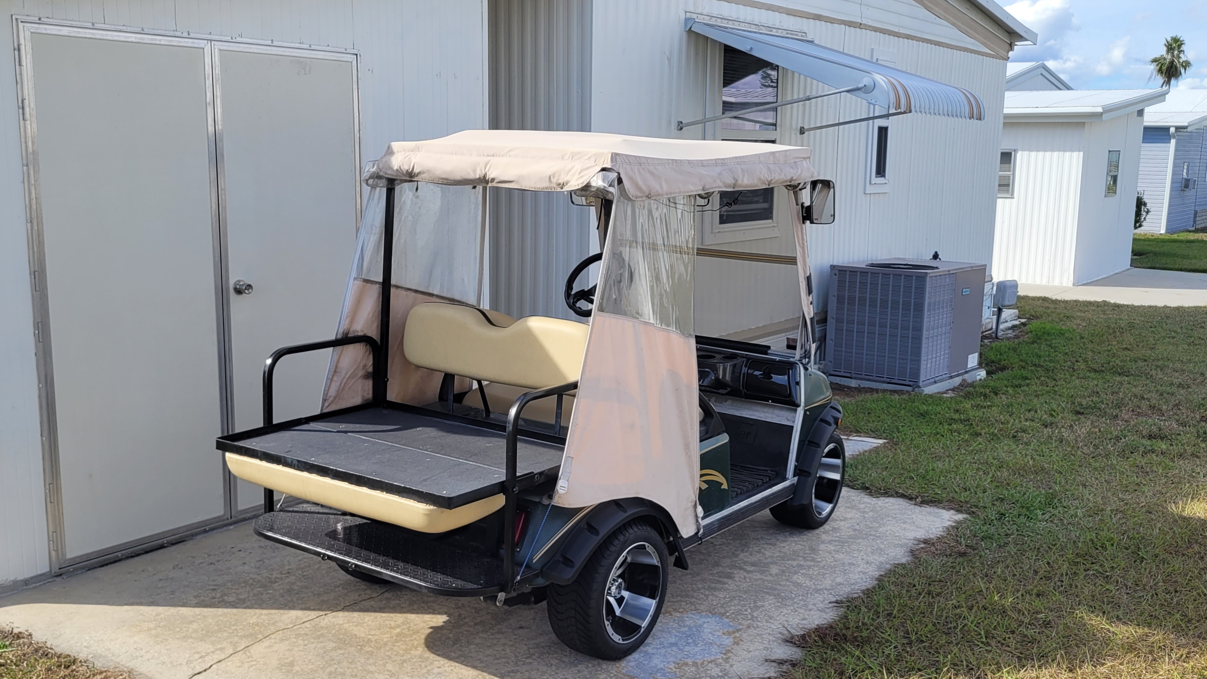 Fully furnished and move in ready. Additions include a 10′ x 13′ front room. Home contains new luxury vinyl plank floors. All new vinyl windows throughout including new vinyl patio door. Washer and dryer is included. Golf cart was upgraded to lithium maintenance-free batteries and is included.