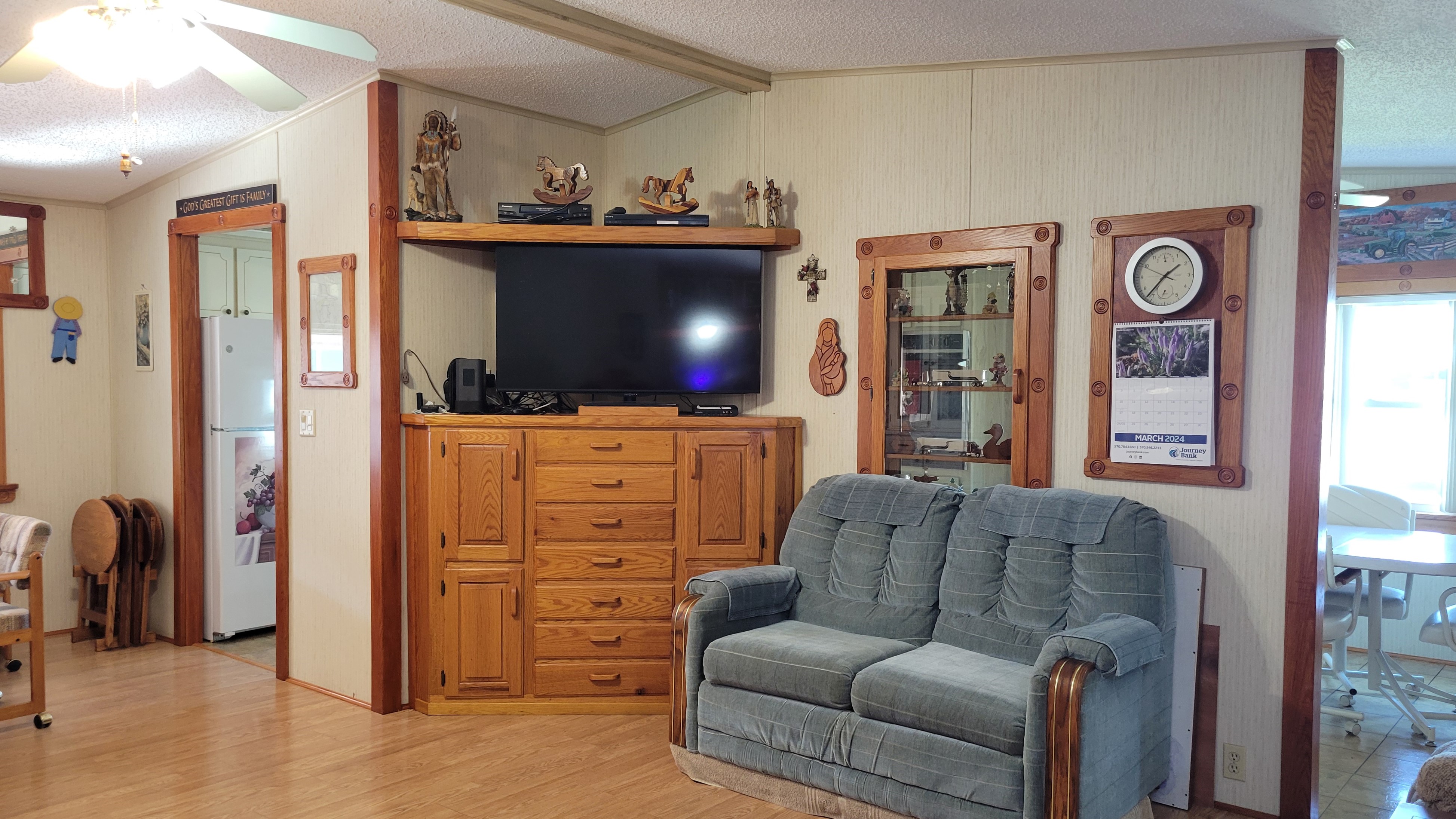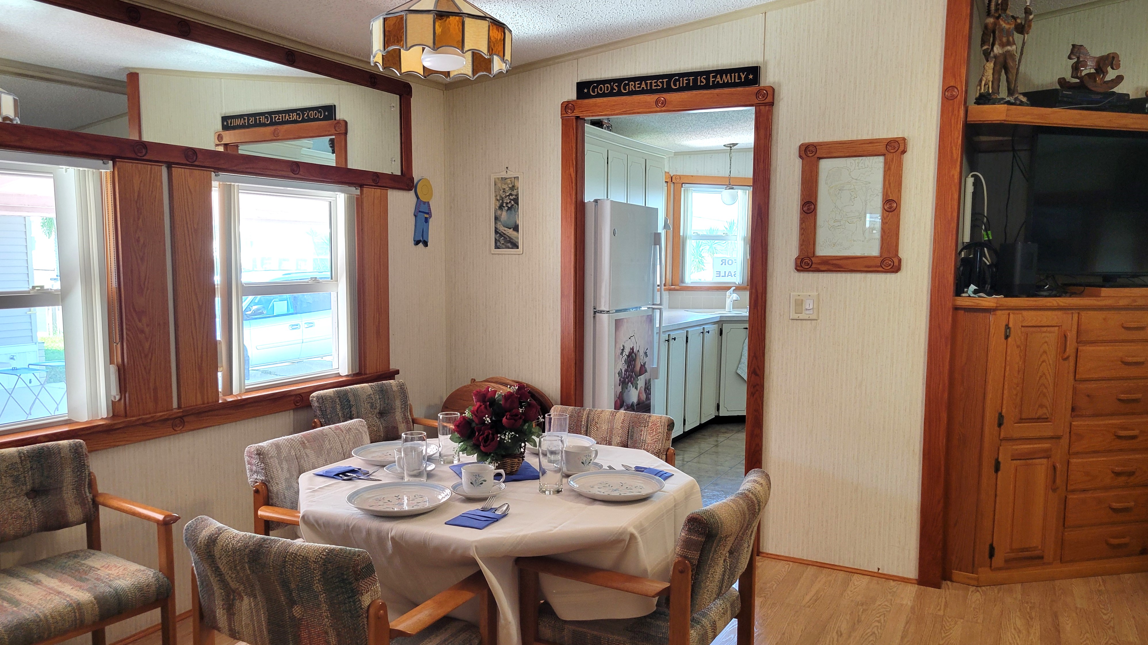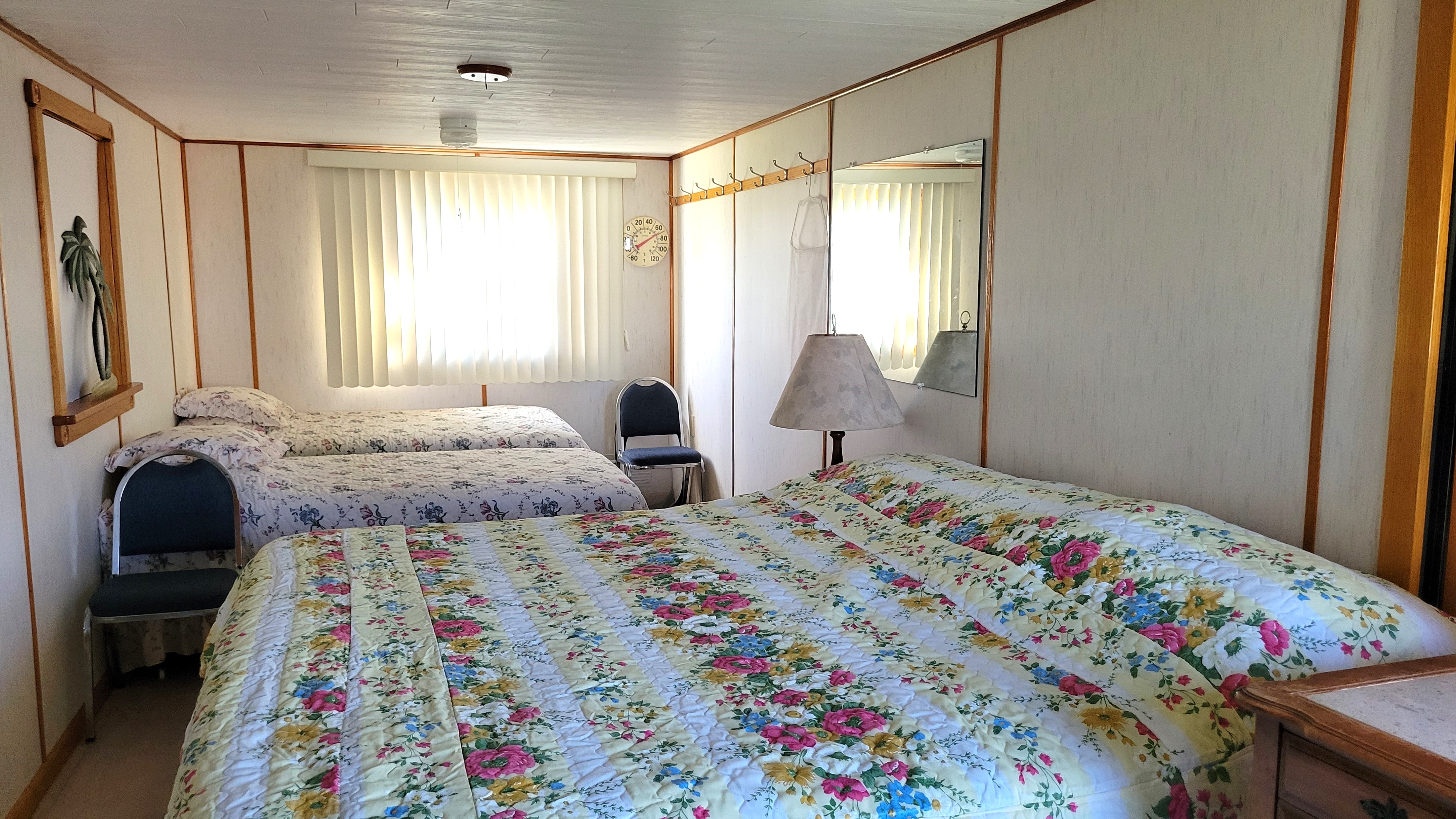 This charming and spacious fully furnished home features many “craftsman” touches with custom woodwork door frames and window frames throughout, vaulted ceilings, replacement windows throughout. Also included are a number of custom handcrafted built-ins, knick-knacks, and other special surprises. Take a look at all this house has to offer. The main living areas have quality Pergo flooring, which looks and feels like hardwood. A very large kitchen with plenty of storage with handy drawers inside the cupboards! The kitchen also has space for a second refrigerator, with a water line for an ice-maker. The large dining room has lovely built-in cabinets, plus there is a nice sizeable dining area in the kitchen. Both bedrooms have king size beds (double twins), and walk-in closets. Recently updated plumbing. There is a 10×24 bonus room that is currently setup as a guest bedroom (one king sized bed plus two twin beds). This room could be used as a craft room, sewing room, den, or office. The laundry is indoors with special storage. The large shed has a sink and a fish-cleaning station, a workshop area, a storage area, and lots of extras.