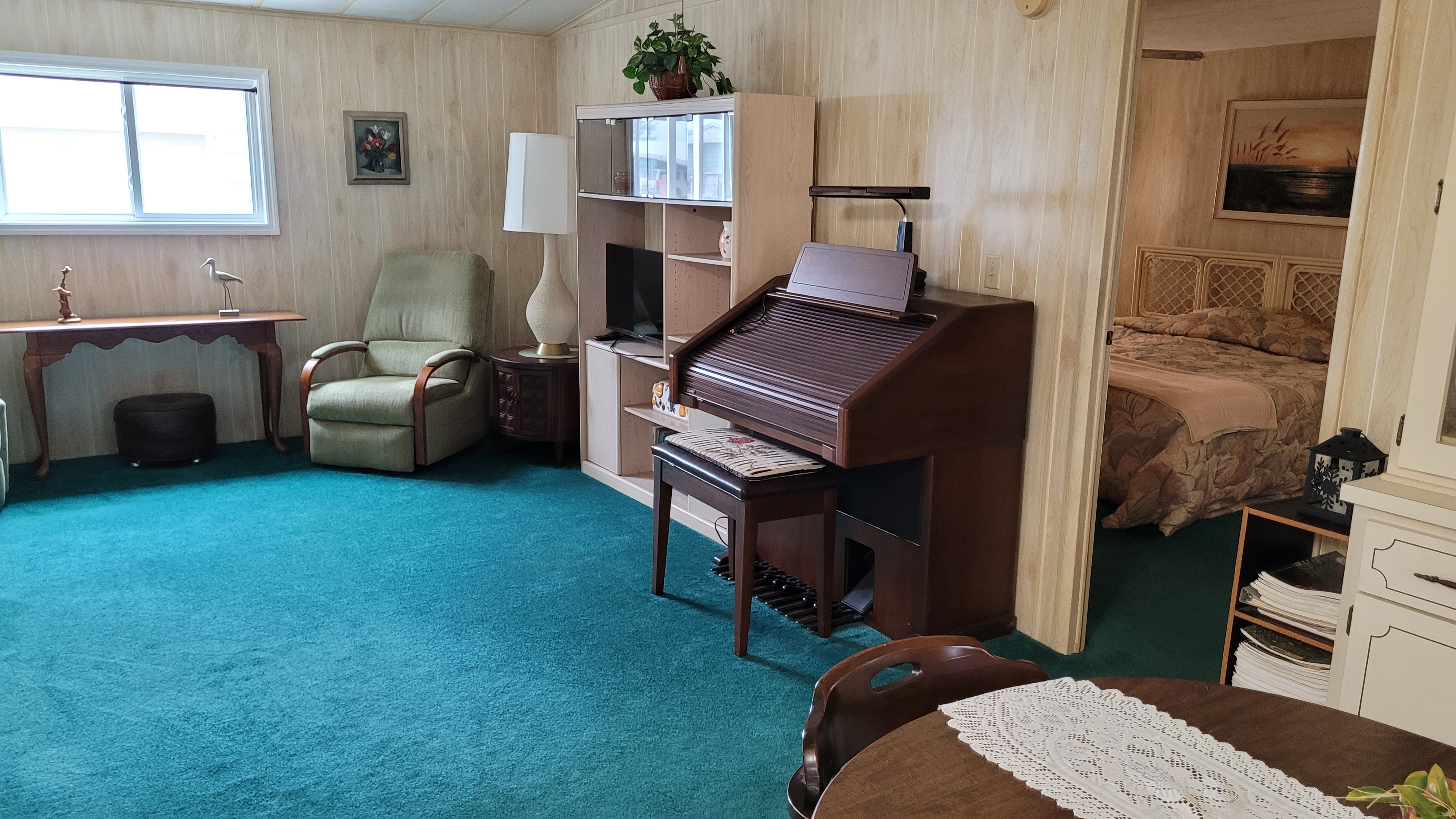 Fully furnished home on a corner lot with enchanting lake views. This property features not one, but two spacious driveways that provide ample storage options, making it ideal for those with recreational vehicles. The home has a newer roof and energy-efficient A/C system, ensuring comfort throughout the seasons. Inside, you’ll find a seamless blend of warmth and style, with plush carpet and durable linoleum flooring throughout, providing a perfect canvas for your personal touches. Whether entertaining guests or enjoying quiet moments, this home offers a serene and inviting atmosphere that truly feels like a retreat.